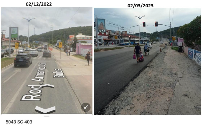Para chegar ao ponto de ônibus, mais poeira e mudanças em obras que começam sem ter sentido e que não terminam não se sabe porquê. Ao sair da Servidão Três Marias, vemos a diferença em ritmo acelerado. A prioridade da segurança dos pedestres foi posta à venda. Há quatro meses a obra parecia que aumentaria o trecho de ciclovias, mas depois desse tempo as ilusões com alguma melhoria se foram. Para quem depende de seus pés e do transporte coletivo para a labuta cotidiana restou o gosto amargo da raiva.