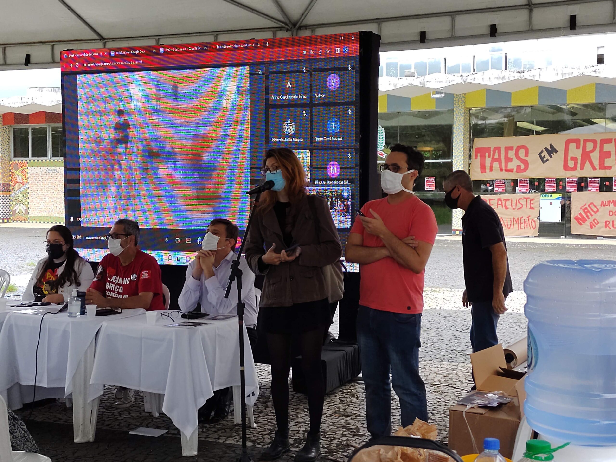 Além dessas atividades com os servidores, os trabalhadores também realizaram conversas com os estudantes para expor as pautas da greve e pedir apoio, apontando o quanto a pauta por condições de trabalho para os servidores também está vinculada a luta pela universidade como um todo e assim pelas condições de estudo deles.