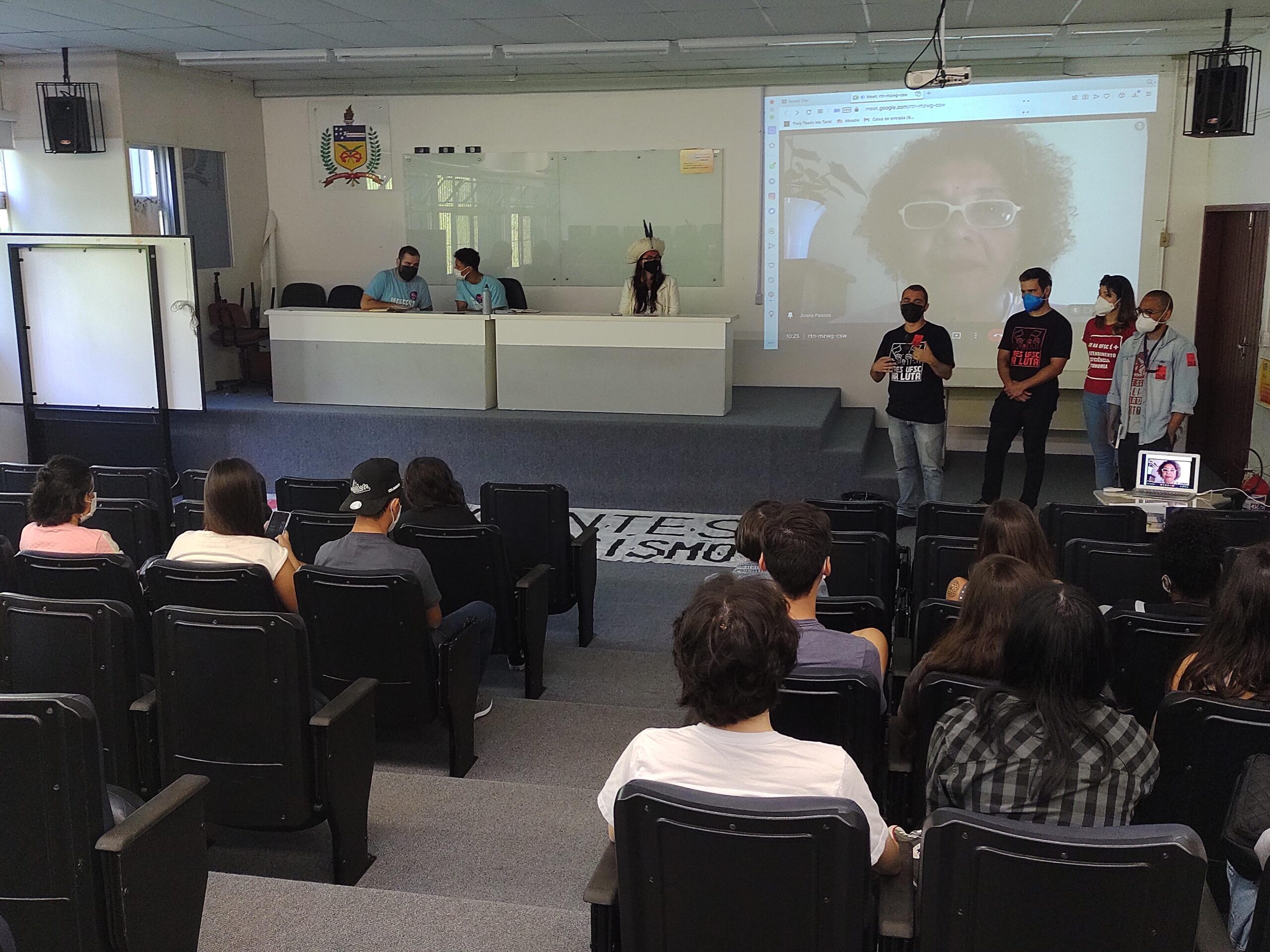 Os trabalhadores fizeram panfletagem na fila do RU, fala na abertura da aula magna, conversas em atividades de centros acadêmicos de recepção de calouros e fala na abertura da atividade cultural do “Projeto 12h30”.