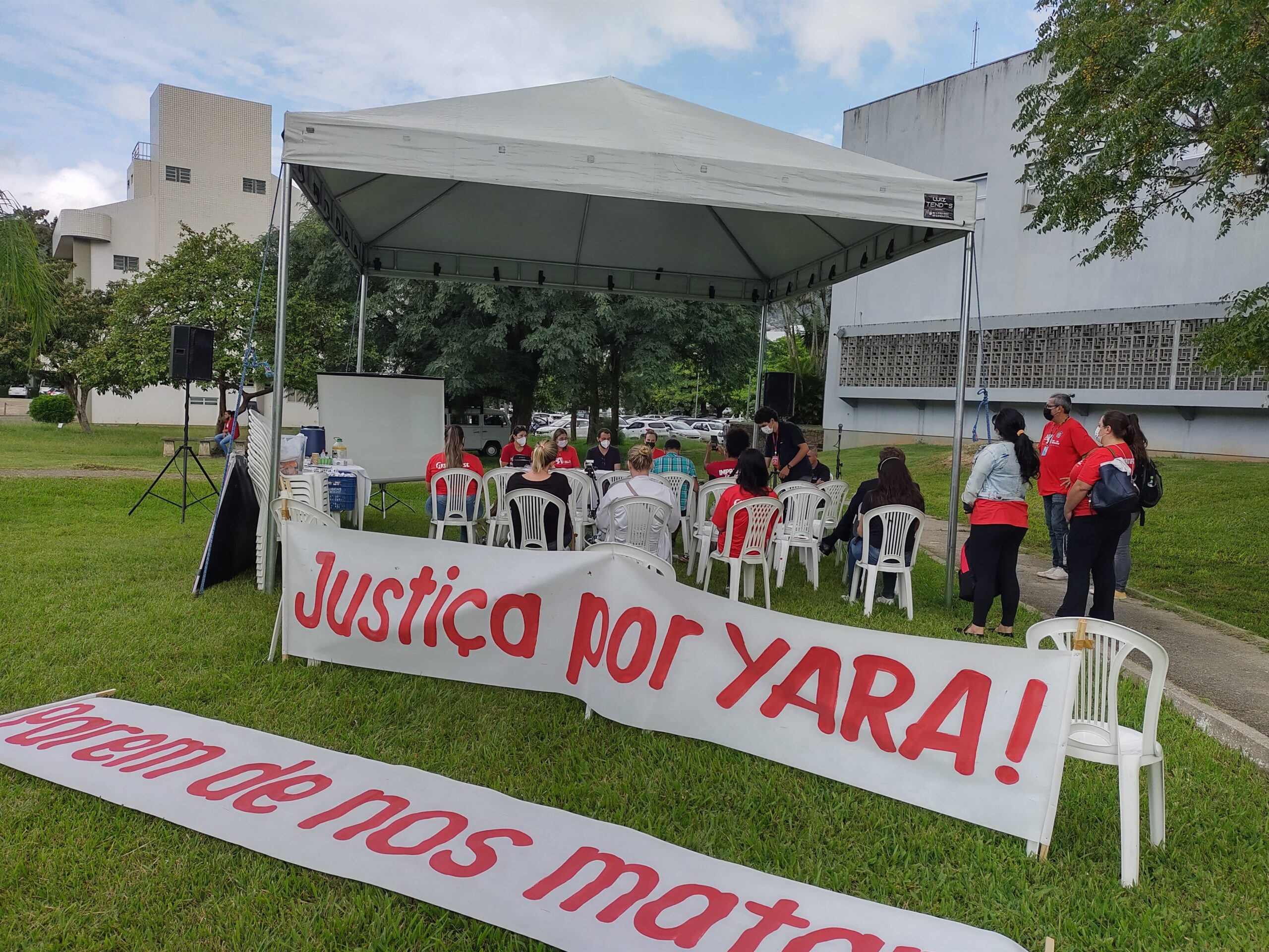 Além disso, os trabalhadores exigiram no Ato que a reitoria se posicionasse de forma contundente pela apuração e responsabilização dos responsáveis pelo assassinado brutal da servidora Yara (trabalhadora do HU, mãe de alunos do colégio de aplicação que foi encontrada carbonizada).