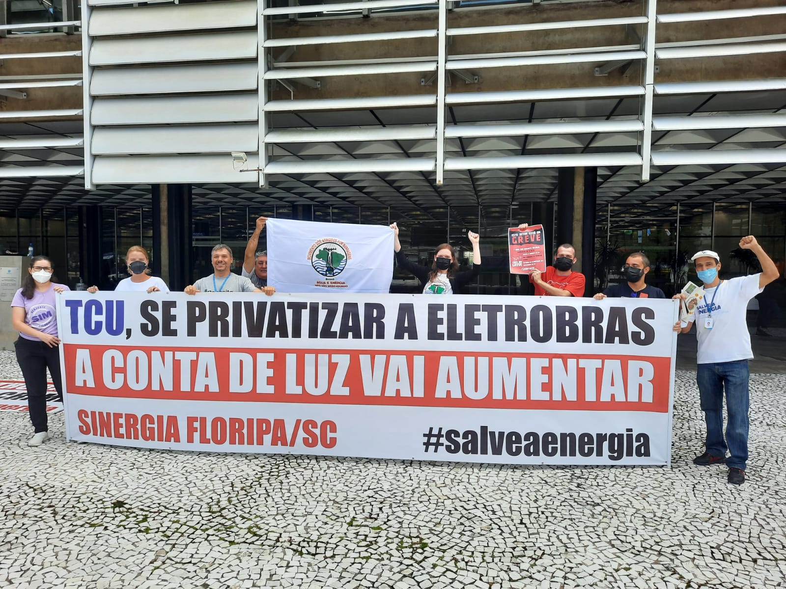 Trabalhadores da UFSC presentes em Ato em defesa da Eletrobrás – foto Sinergia