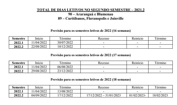 Já a graduação, com exceção do curso de Engenharia de Materiais e as aulas do internato de medicina,  o semestre de 2021 irá começar no dia 14/06 e será finalizado em 03/10. Haverá um pequeno recesso até 24/10. O semestre de 2021.2 deve começar dia 25/10 e se estende até 26/03, havendo um período de férias entre 14/12 e 31/01.