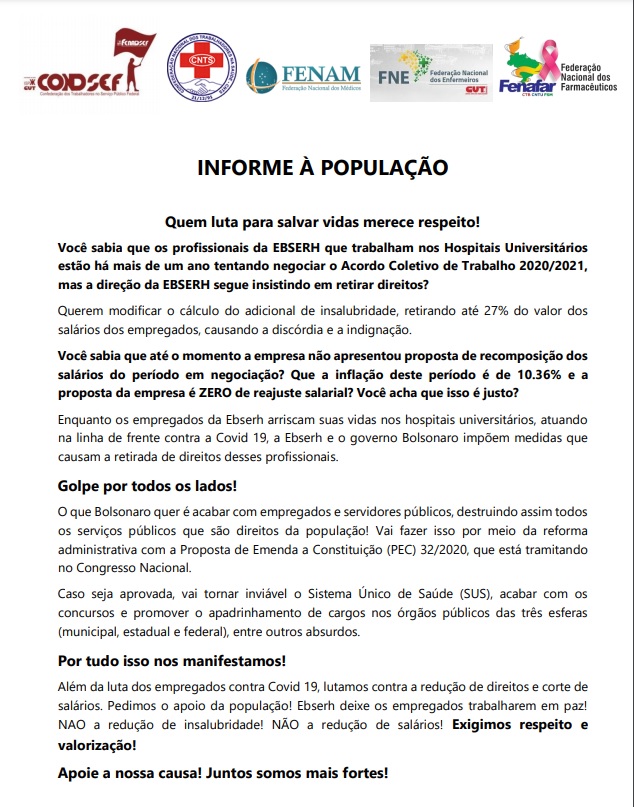Uma comunicação dos trabalhadores à população foi divulgada, como forma de busca por apoio na luta por seus direitos, como consta a seguir:
